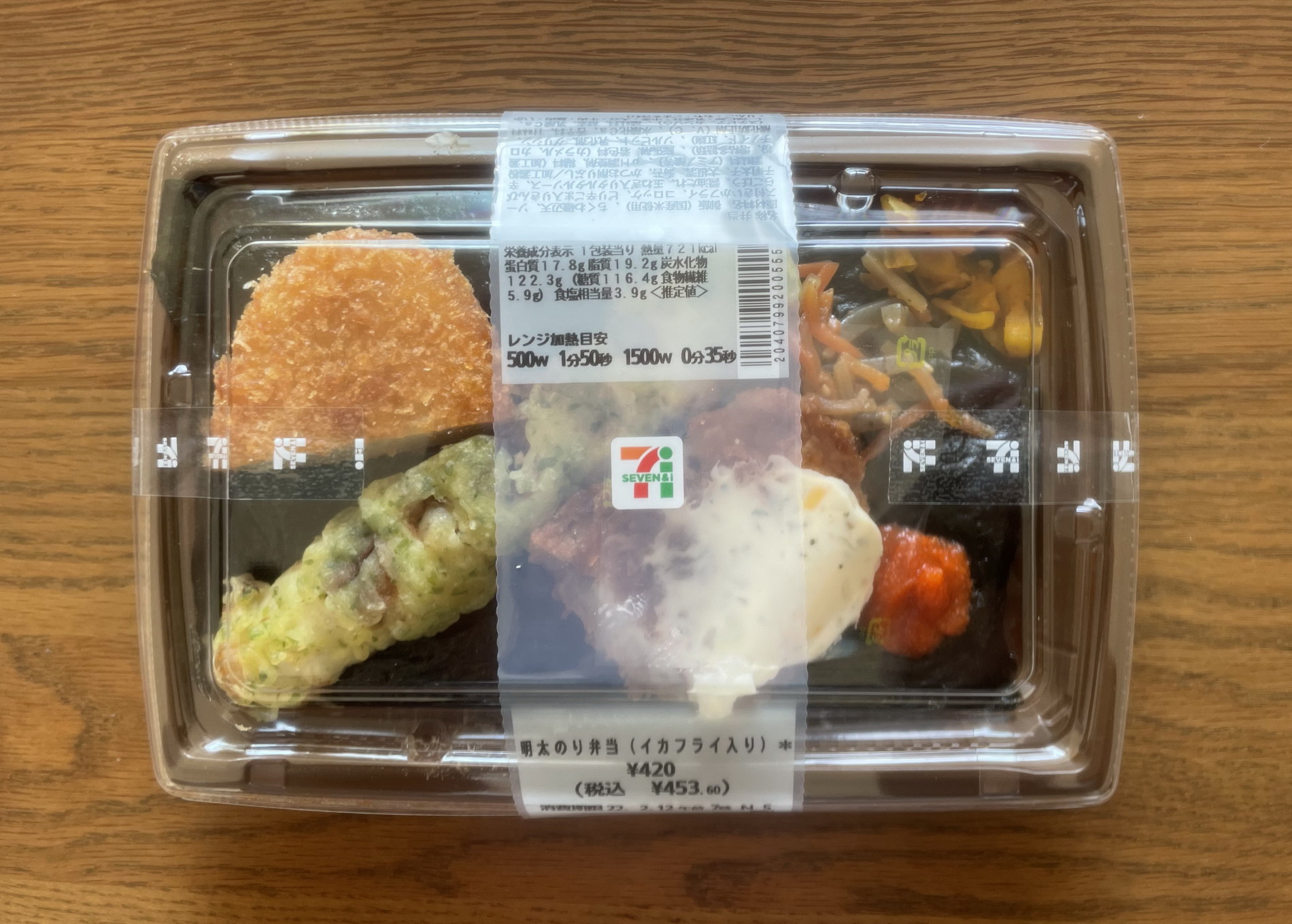 セブンイレブンの「明太のり弁当(イカフライ入り)」を食べた。
