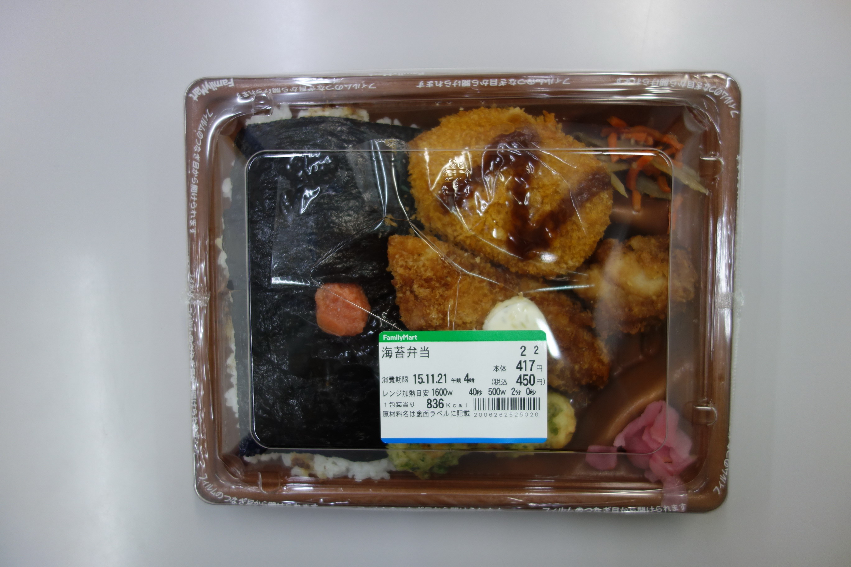 ファミリーマートの「海苔弁当」を食べた。