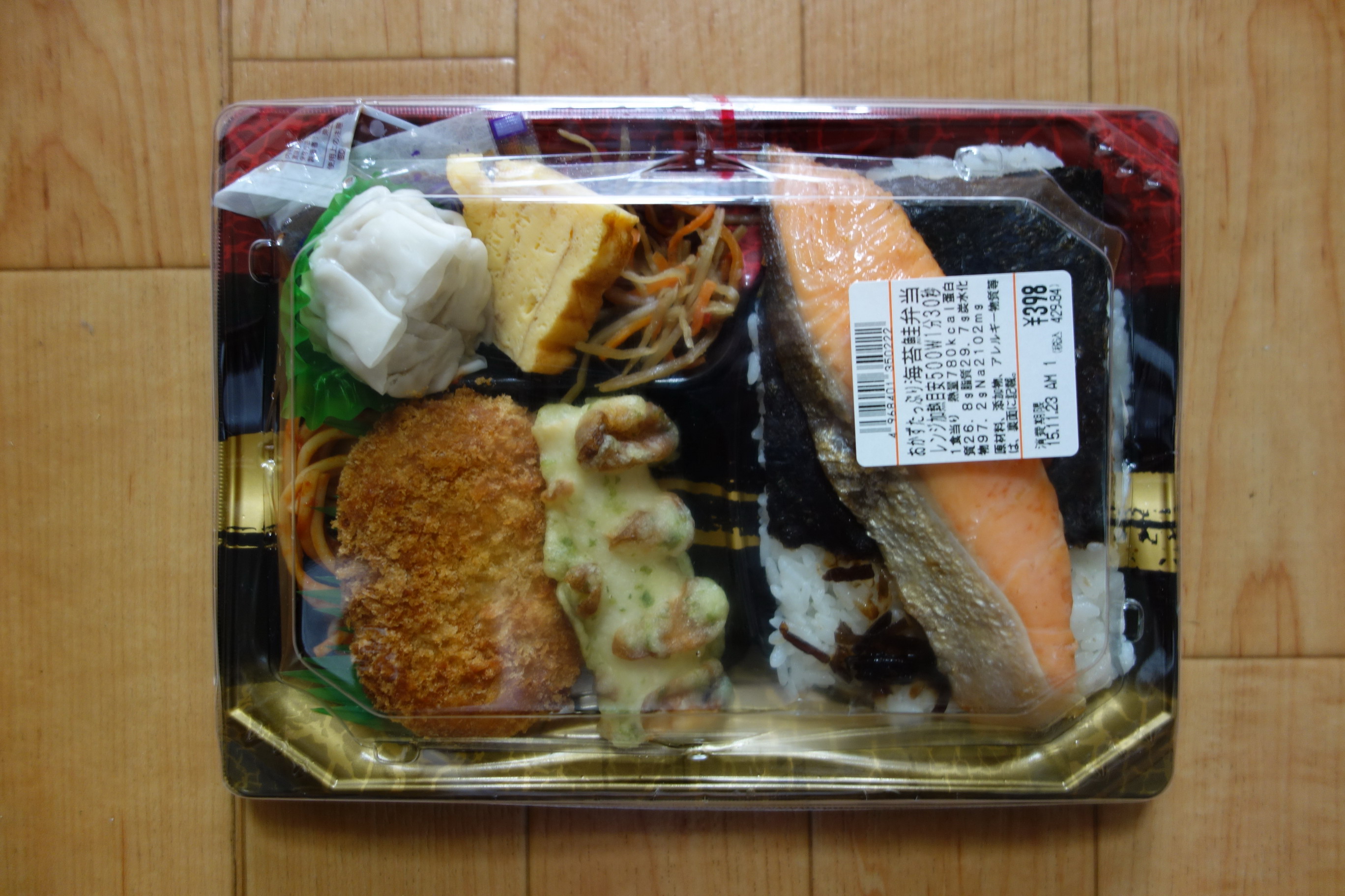 ライフの「おかずたっぷり海苔鮭弁当」を食べた。