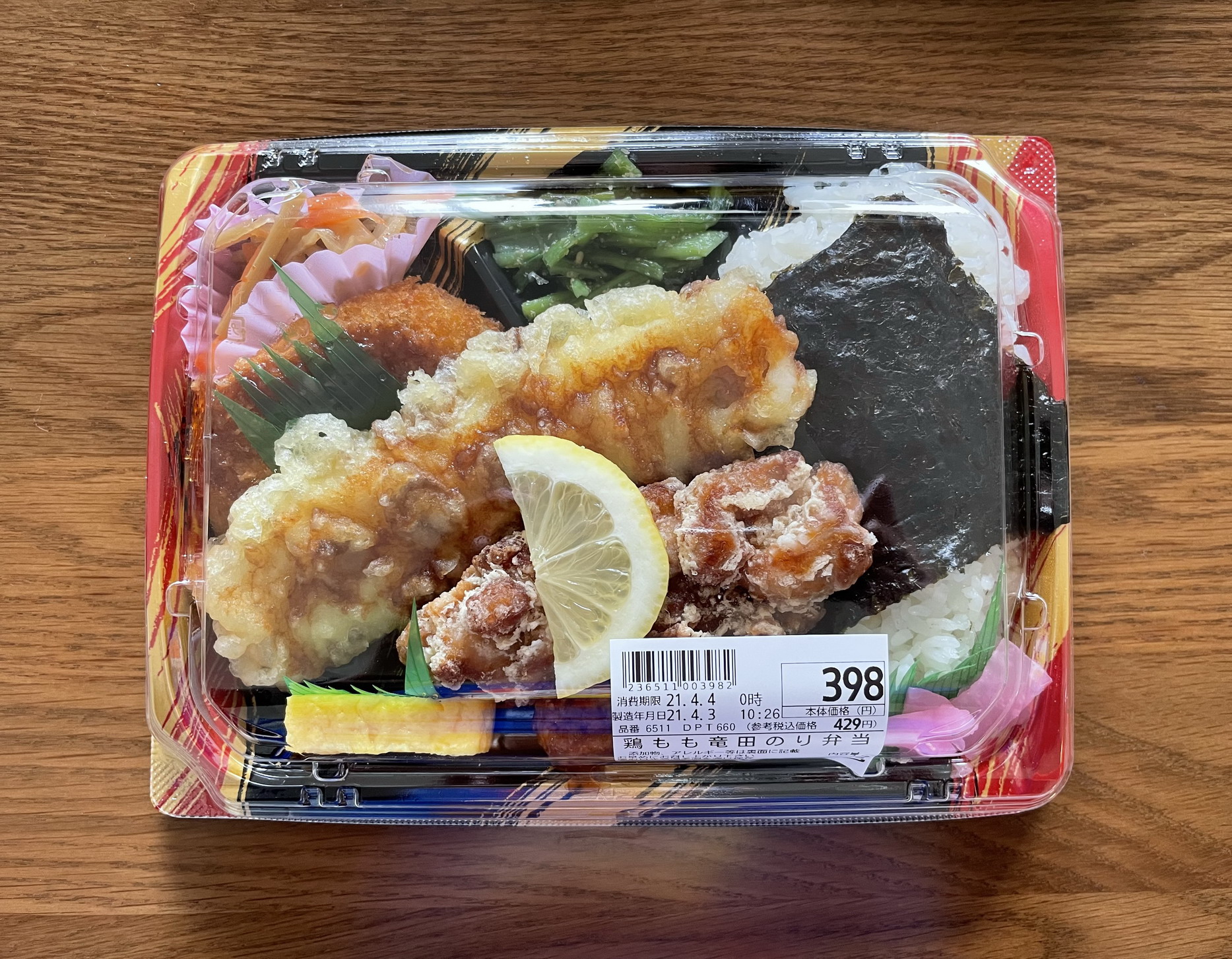 東武ストアの「鶏もも竜田のり弁当」を食べた。