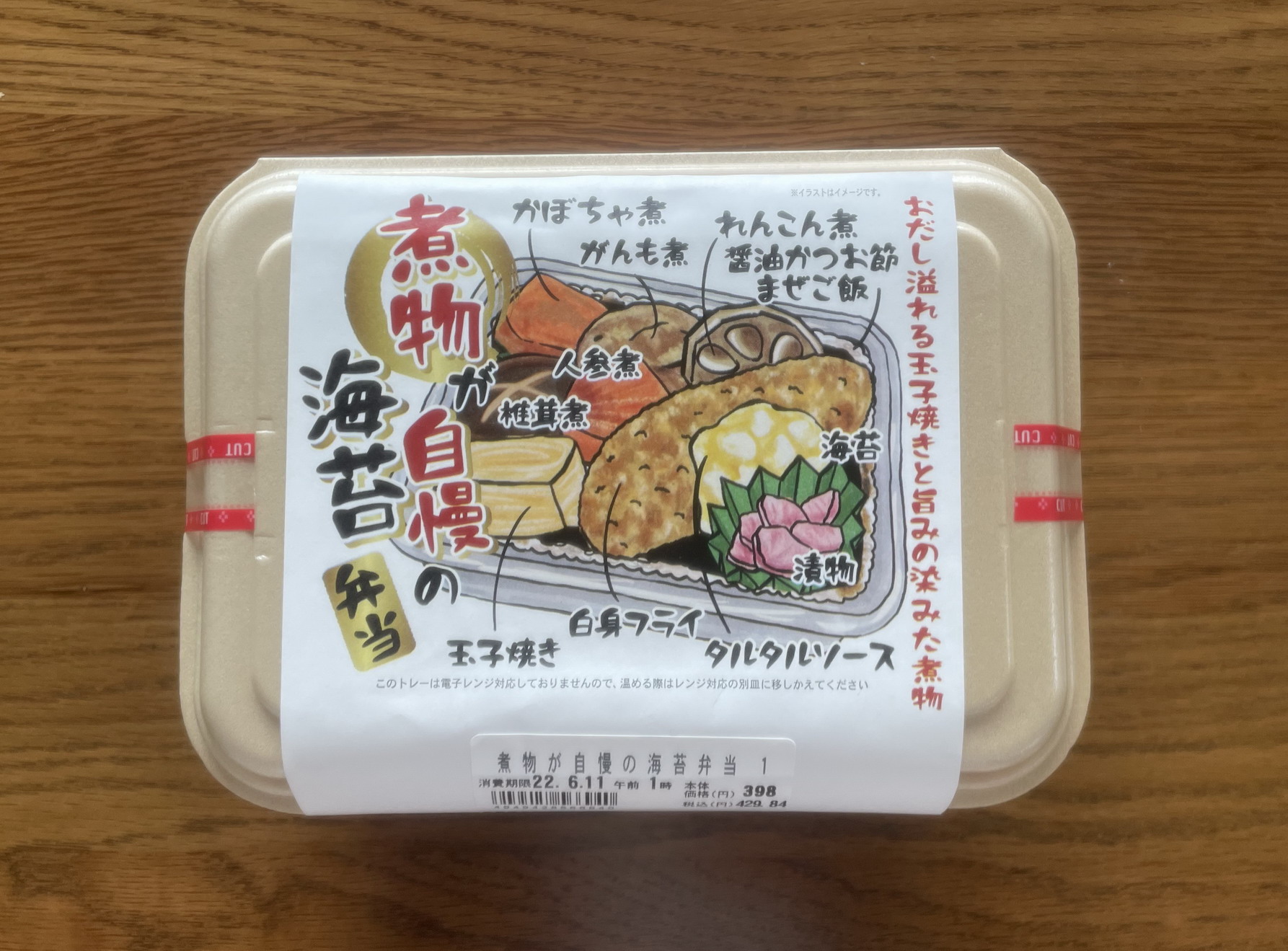 ウェルシアの「煮物が自慢の海苔弁当」を食べた。