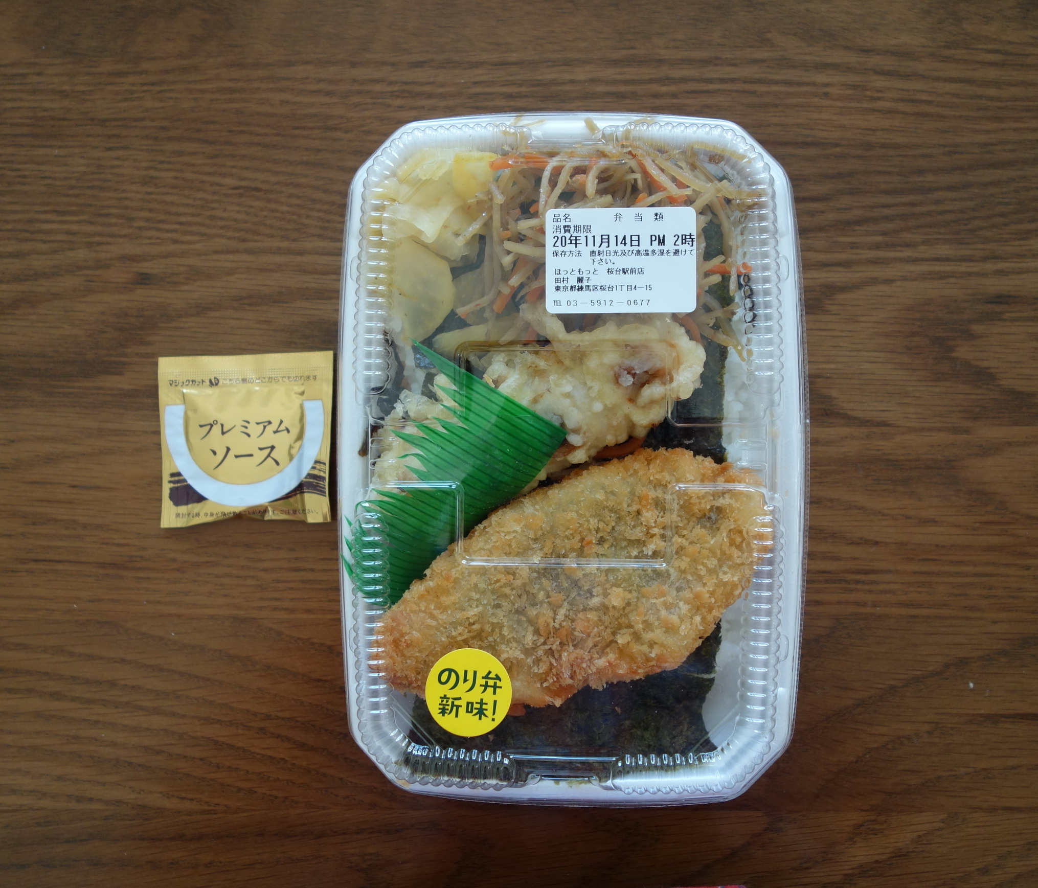 この弁当チェーンでは、ずいぶん前に「ツナマヨネーズのり弁」というのを食べているが、11月2日より期間限定で新発売されたこののり弁は、そのスピンオフ商品と言えるかもしれない。定価税込390円、熱量721キロカロリー。すべてのおかずがご飯の上に載る一体型で、製造者はほっともっと桜台駅前店の田村麗子さん。添付調味料は、ほっともっとオリジナルのプレミアムソースが一袋。おかずの内容は、白身魚フライ、ちくわ天、きんぴら、大根の漬け物、といつもの同店のベーシックなのり弁と同じだが、ご飯のほうは、海苔とその下に塩昆布、さらにはツナマヨネーズといういわば「やりすぎ仕様」になっているのが特徴となっている。ツナマヨネーズのり弁はかなり美味かった記憶があるので、かなり期待しながらの実食。4種のおかず、白身魚フライ、ちくわ天、きんぴら、大根の漬け物に関しては、これまでさんざん食べてきたのり弁と同様なので、詳細なレビューは割愛するが、白身魚フライは肉厚で非常に美味しく、ちくわ天もクリスピーな揚がりで美味、きんぴらと大根の漬け物も量たっぷりで文句のつけどころがなかった。で、肝心のご飯のほうは、ツナマヨ+塩昆布の相乗効果がかなりすさまじく、最初の一口二口くらいまでは美味しいが、そのジャンキーでしょっぱすぎる味にすぐに飽きがきた。ツナマヨだけのときはそうは思わなかったから、おそらく塩昆布がよけいなのだろう(掛け算が成功していないという感じ)。というわけでの総合評価は4点(10点満点中)。メニューリーフレットには、ツナマヨに塩昆布を加えたことで「旨みたっぷり」になったと説明しているが、旨みを超えて過剰が過ぎる。食後に60円安い普通ののり弁が恋しくなった。
