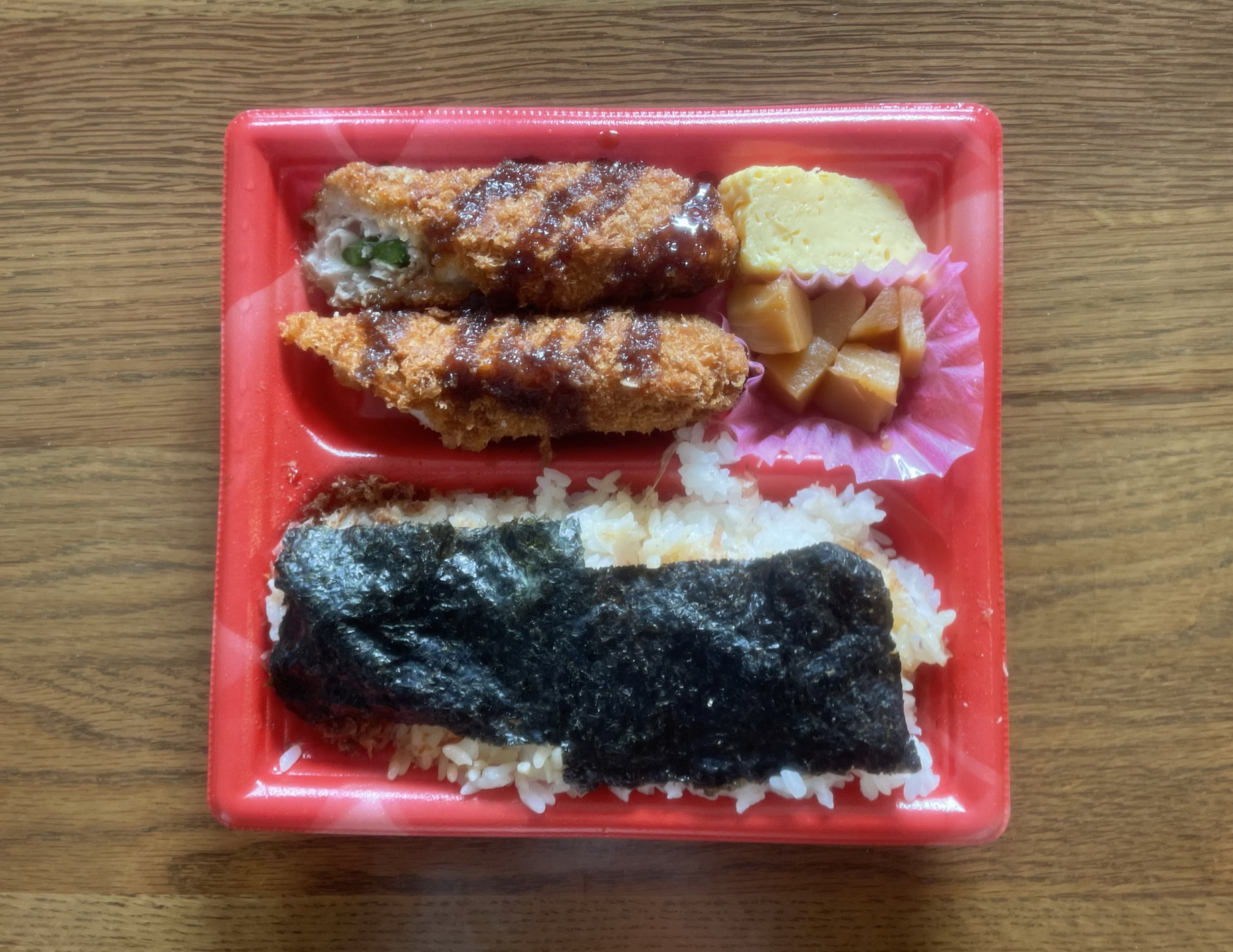 キッチンオリジンの「アスパラ豚巻きフライのり弁当」を食べた。
